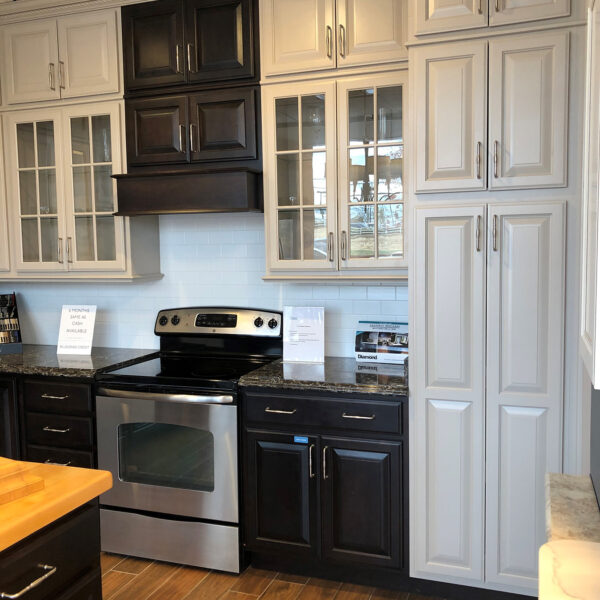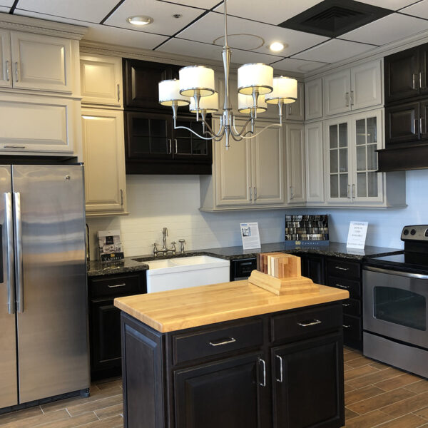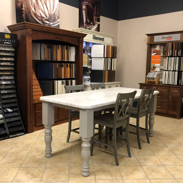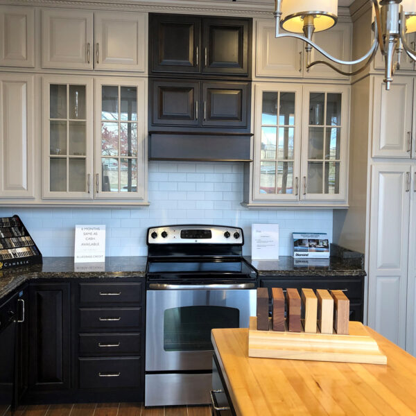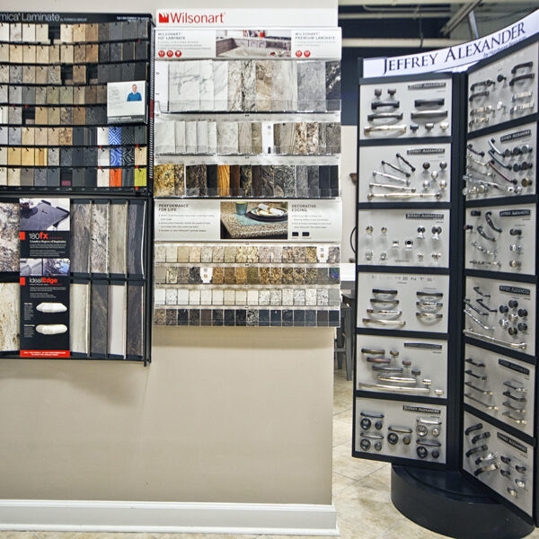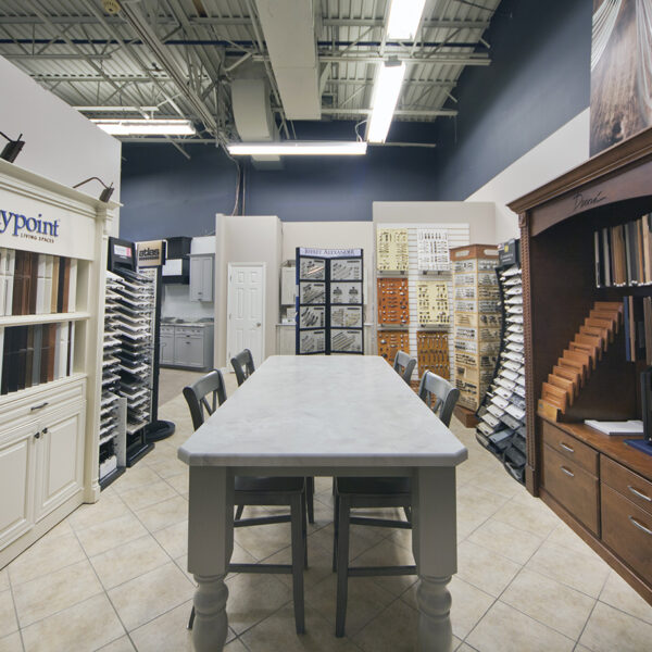 This location displays cabinets (Aristokraft, Diamond Vibe, Diamond Distinction, Decora, Waypoint, and NatureKast), GE appliances, countertops, and decorative hardware. Trained designers are available to assist customers with creating the latest in kitchen and bath spaces. Although not displayed, the Lexington location can sell flooring, tile, windows, and doors.